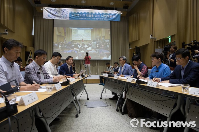 (서울=포커스뉴스) 박원순 서울시장이 12일 오후 서울 중구 서울시청에서 열린 '구의역 사고 해결을 위한 시민토론회'에서 발언을 하고 있다.
