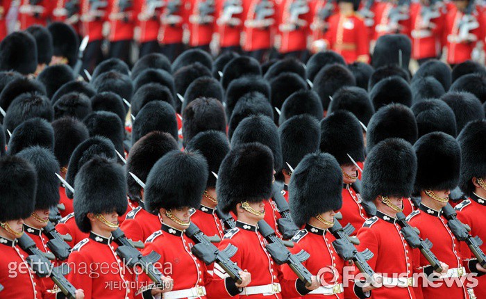 (서울=포커스뉴스) 엘리자베스 2세 영국 여왕의 90세 생일잔치에 근위병 곰털모자 '버스비'가 오점을 남겼다. 근위병 1명이 '버스비' 탓에 쓰러졌다.
