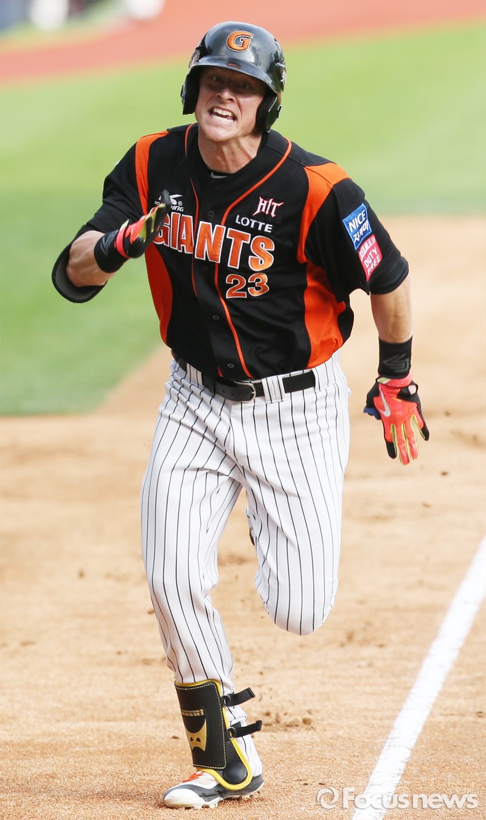 (서울=포커스뉴스) 12일 서울 잠실구장에서 열린 2016 프로야구 롯데-두산 경기 3회초 롯데 선두타자 아두치가 중견수를 넘기는 3루타와 송구 실책을 틈타 홈으로 달리고 있다.