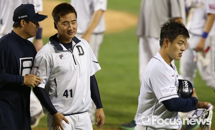| △ 민병헌이 고마운 정재훈 |