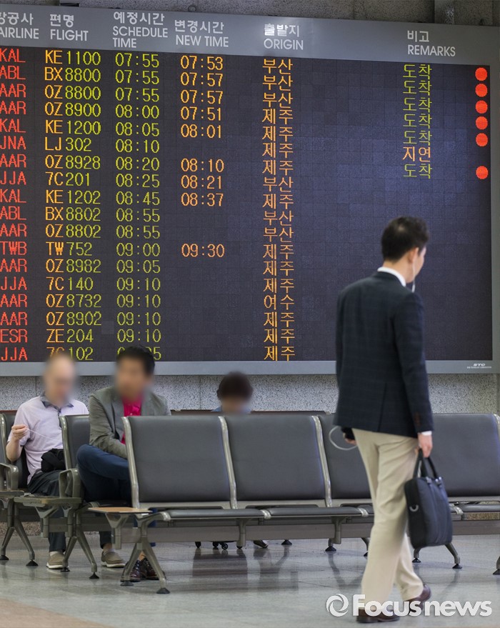 (서울=포커스뉴스) 13일 오전 서울 김포공항 국내선 청사에 항공기 도착 정보가 게시되고 있다. 지난 12일 오후 저시정특보가 내려진 제주공항은 짙은 안개와 연결편 문제로 150여편 지연 운항, 2편 결항했지만 13일 오전 6시에 특보를 해제했으며 오전 9시 현재 모든 항공편이 정상 운항하고 있다고 밝혔다.