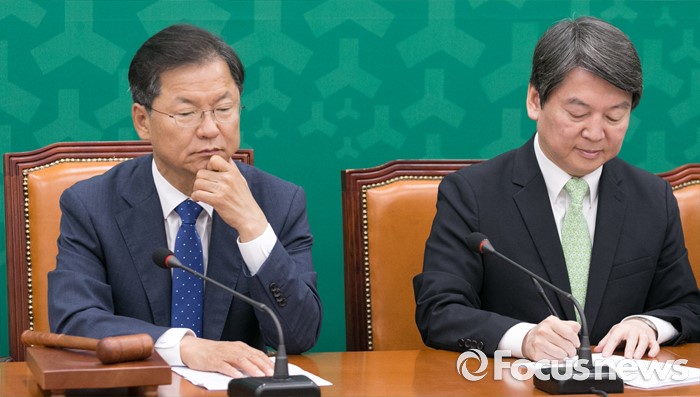 (서울=포커스뉴스) 13일 오전 서울 여의도 국회에서 열린 국민의당 최고위원회의에 참석한 안철수(오른쪽) 상임공동대표와 천정배 공동대표가 생각에 잠겨 있다.