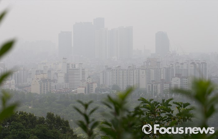 (서울=포커스뉴스) 13일 서울 마포구 하늘공원에서 바라본 서울 도심이 안개로 뿌옇게 보이고 있다.