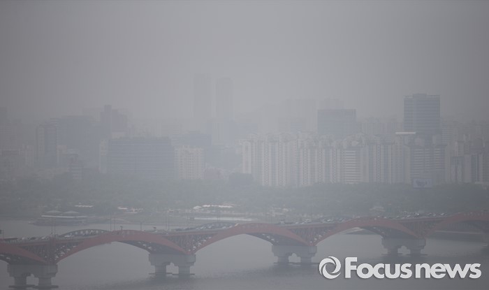 (서울=포커스뉴스) 13일 서울 마포구 하늘공원에서 바라본 한강과 서울도심이 안개로 뿌옇게 보이고 있다.