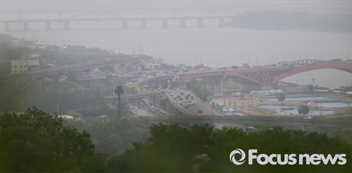 (서울=포커스뉴스) 13일 서울 마포구 하늘공원에서 바라본 서울 도심이 안개로 뿌옇게 보이고 있다.