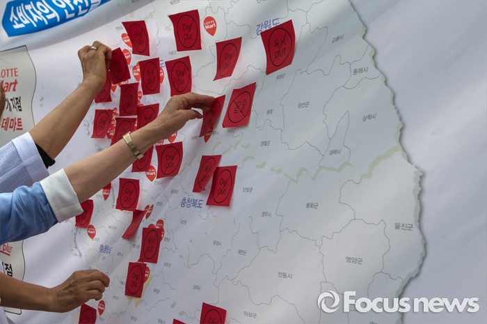 | △ 전국의 롯데마트 그려진 지도에 'Oxy, Out' |