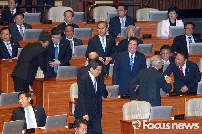 (서울=포커스뉴스) 13일 오전 서울 여의도 국회에서 열린 20대 국회 개원식에 황교안 국무총리 등 국무위원들이 참석하고 있다.