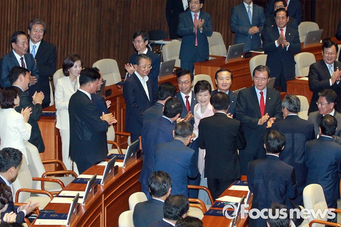 | △ 박수 받으며 퇴장하는 박근혜 대통령 |