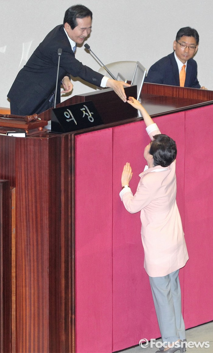 | △ 정세균 20대 국회의장과 인사하는 朴 대통령 |