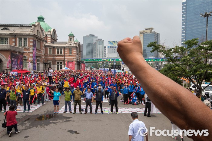 (서울=포커스뉴스) 13일 오후 서울 용산구 서울역광장에서 '제 29주년 6.13 정신계승 전국노점상대회'가 열리고 있다. 6.13 대회는 1988년 6월 13일 억눌린 노점상의 울분이 처음 세상 밖으로 터져 나온 날을 기념하기 위한 날이며 이번 집회에서는 노점관리대책 중단, 노점 생존권 보장, 기본법 및 노점상보호 특별법 제정 등을 요구했다.