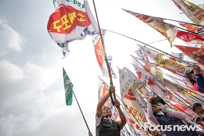 (서울=포커스뉴스) 13일 오후 서울 용산구 서울역광장에서 '제 29주년 6.13 정신계승 전국노점상대회'가 열리고 있다. 6.13 대회는 1988년 6월 13일 억눌린 노점상의 울분이 처음 세상 밖으로 터져 나온 날을 기념하기 위한 날이며 이번 집회에서는 노점관리대책 중단, 노점 생존권 보장, 기본법 및 노점상보호 특별법 제정 등을 요구했다.