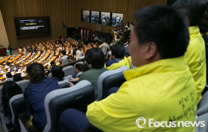 부위원장 선출안 표결은 출석위원 12명 중 6명인 과반수를 채우지 못해 자동으로 무산됐다.지난달 19일 오전 서울 여의도 국회에서 열린 342회 국회(임시회) 1차 본회의에 방청 온 세월호 참사 유가족들이 4·16 세월호참사 특별조사위원회 황전원 위원 선출안 투표 결과를 지켜보고 있다. 2016.05.19 박동욱 기자