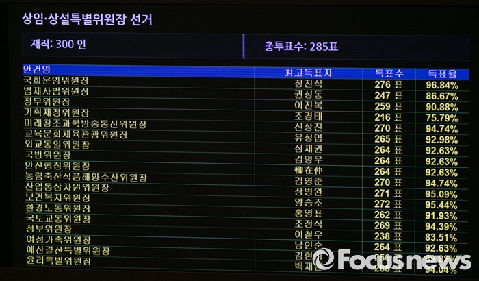 20대 국회, 상임위원장 선출 투표 결과