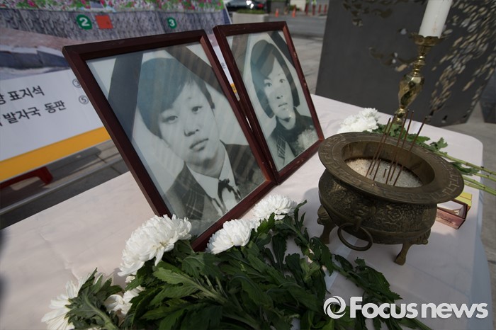 (서울=포커스뉴스) 한·일 월드컵의 열기로 온 나라가 뜨겁던 지난 2002년 6월 13일, 미군의 장갑차에 치여 목숨을 잃은 고(故) 심미선·심효순(당시 14세)양을 추모하는 행사가 13일 서울 광화문 광장에서 열렸다.