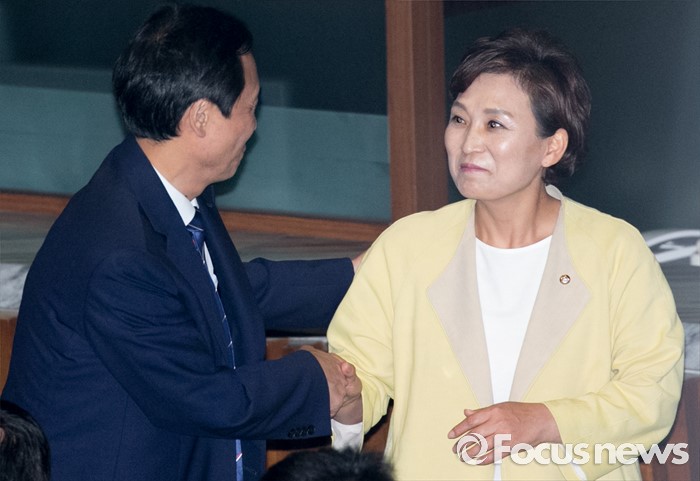 | △ 우상호 축하 받는 김현미 신임 예결위원장 |