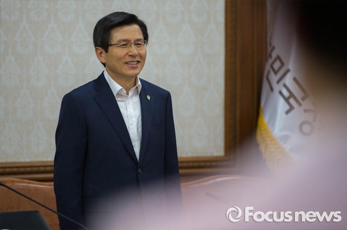 (서울=포커스뉴스) 14일 오전 서울 종로구 정부서울청사에서 열린 국무회의에 참석한황교안 국무총리가 국무위원들에게 인사를 건내고 있다.