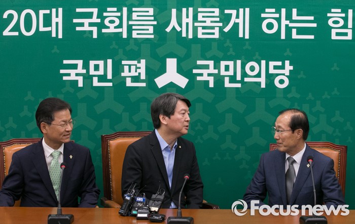 (서울=포커스뉴스) 안철수(가운데) 국민의당 상임공동대표, 천정배(왼쪽) 공동대표가 14일 오전 서울 여의도 국회를 방문한 이원종 대통령비서실장과 면담을 하고 있다.