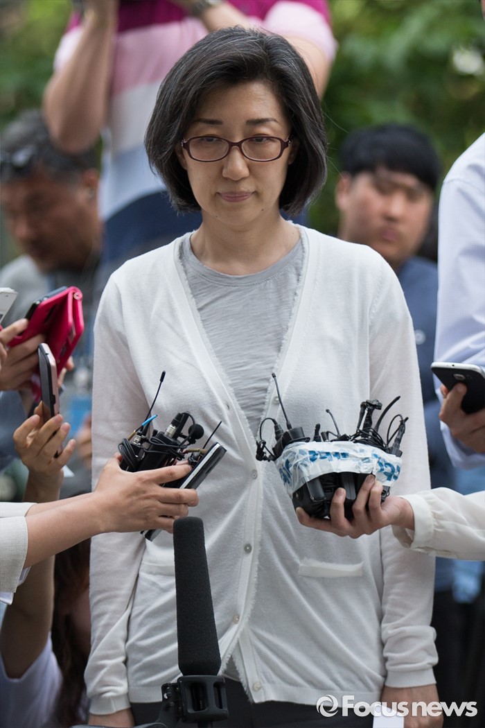 뿔테 안경에 흰색 가디건을 착용하는 등 편한 차림으로 등장한 최 회장은 "최선을 다해 소명하겠다"는 말만 남긴 채 즉결법정으로 입장했다.