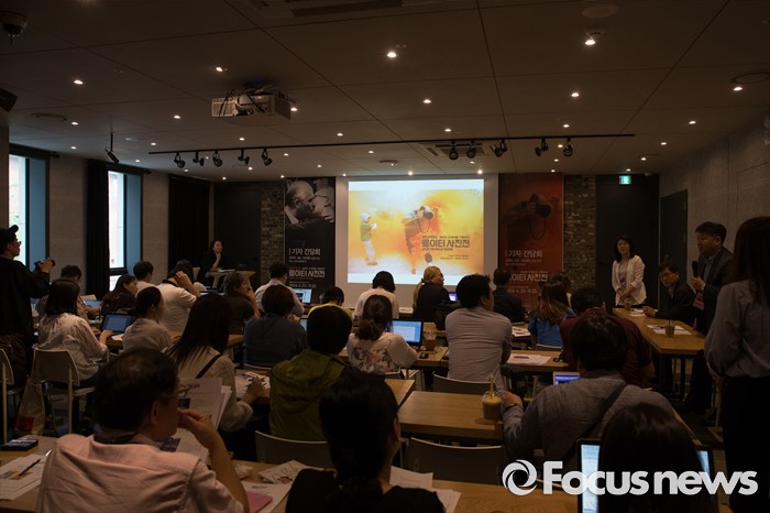 (서울=포커스뉴스) 14일 오전 서울 마포구 한 카페에서 열린 '로이터 사진전, 세상의 드라마를 기록하다' 기자간담회에서 관계자들이 전시에 대해 설명을 하고 있다. 이번 전시는 오는 25일부터 9월 25일까지 예술의전당 한가람미술관에서 개최된다.