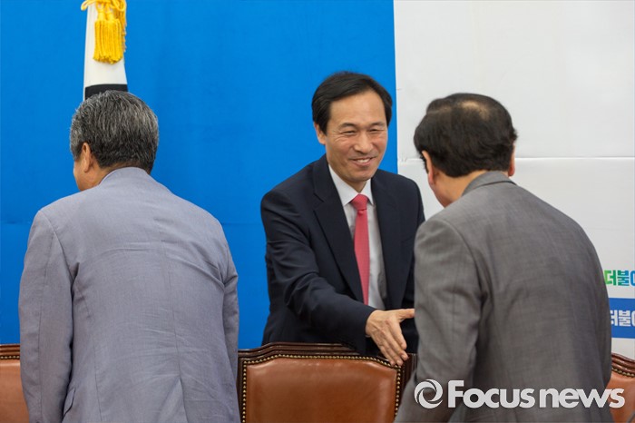 (서울=포커스뉴스) 우상호 더불어민주당 원내대표가 14일 오전 서울 여의도 국회에서 열린 '개성공단기업협회 면담'에 앞서 모두발언 하고 있다.