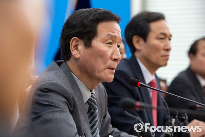 (서울=포커스뉴스) 정기섭 개성공단기업협회 회장이 14일 오전 서울 여의도 국회를 방문해 우상호 더불어민주당 원내대표와 면담에 앞서 발언 하고 있다.
