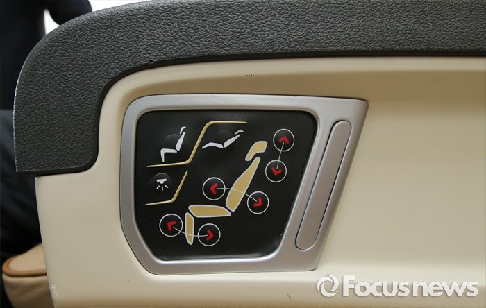 (세종=포커스뉴스) 프리미엄 고속버스 도입에 앞서 시승행사가 14일 오전 세종시 정부세종청사 제2주차장에서 열렸다. 사진은 기아자동차 뉴 그랜버드 프리미엄 골드 익스프레스 내부모습.