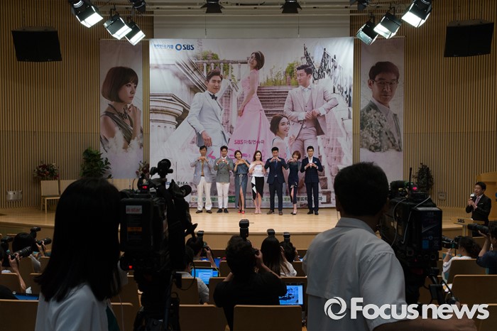 (서울=포커스뉴스) 14일 오후 서울 양천구 SBS 목동사옥에서 열린 SBS 일일드라마 '사랑이 오네요' 제작발표회에 참석한 출연배우들이 포토타임을 갖고 있다.