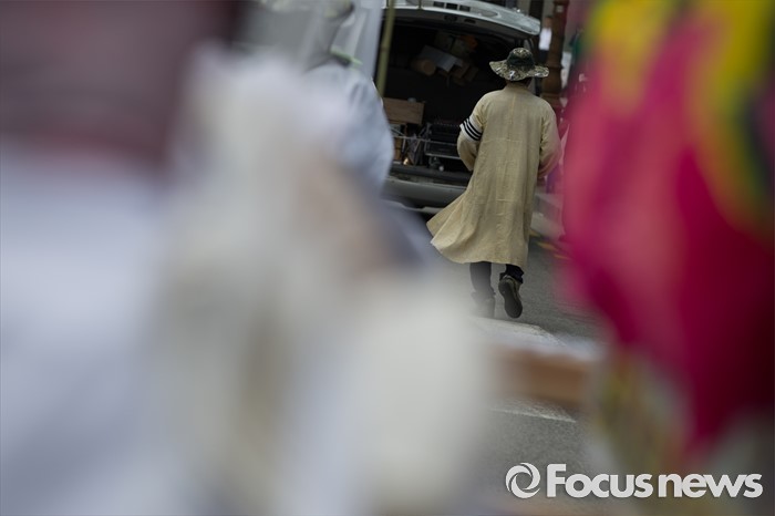 (서울=포커스뉴스) 14일 오후 유성기업 노동자 故 한광호씨의 분향소를 양재동 현대차 본사 앞으로 옮기는 꽃길 100리 행진 2일째에 참여한 노동자들이 국회를 출발해 한남동 현대차 정몽구 회장 집으로 행진하고 있다.