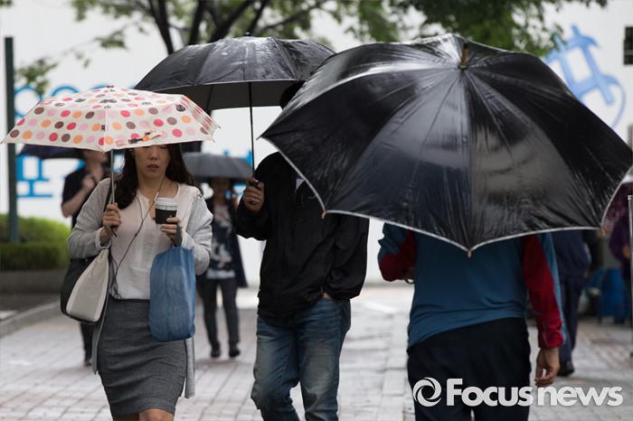 기상청 관계자는 "서해안, 남해안, 일부 내륙에는 바람이 강하게 불 것"이라며 "시설물 관리와 안전사고에 각별히 유의해야 한다"고 조언했다.(서울=포커스뉴스) 전국이 흐리고 비가 내리는 24일 오전 서울 마포구 공덕역 인근 거리에서 시민들이 우산을 쓰고 지나가고 있다. 2016.05.24 허란 기자