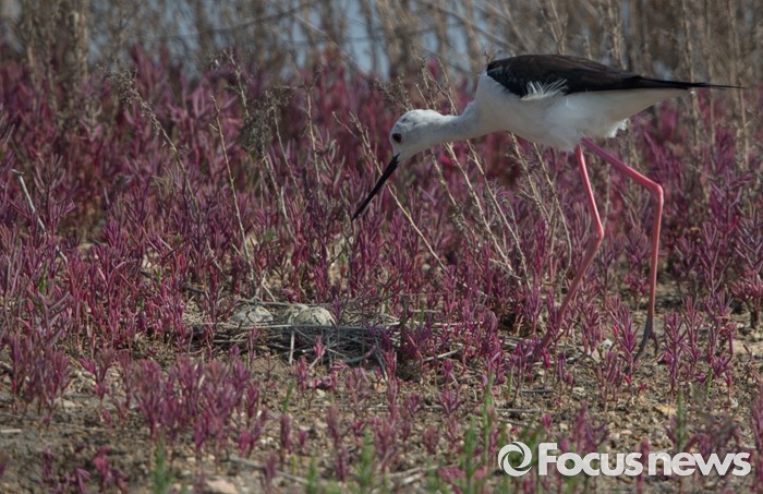 (인천=포커스뉴스) 수컷과 알품기를 교대한 장다리물떼새 암컷이 둥지로 들어오고 있다.