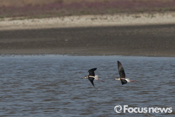 (인천=포커스뉴스) 영종도 갯벌 매립지 습지에서 번식중이던 장다리물떼새가 둥지 인근에 다른 새가 접근하자 , 이를 막으러 날아가고 있다.