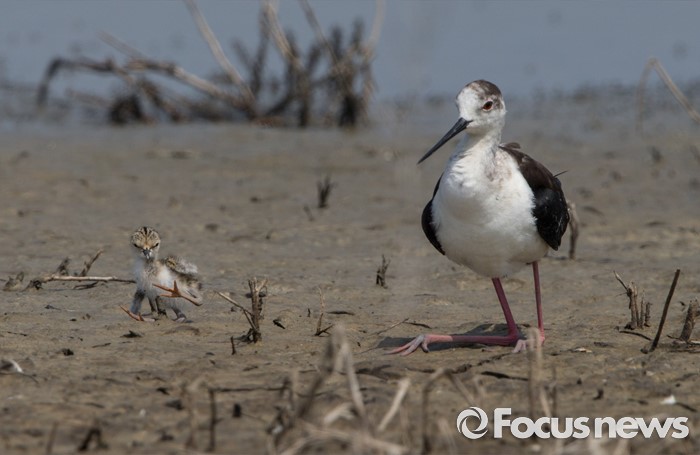 (인천=포커스뉴스) 부화한 지 하루된 장다리물떼새 어린새가 영종도 갯벌습지에서 아빠의 행동을 학습하고 있다.
