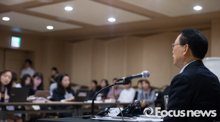 (서울=포커스뉴스) 15일 오전 서울 종로구 세종문화회관 서울시립교향악단 연습실에서 최흥식 서울시향 대표가 기자간담회에 참석해 재단 운영 방향에 대한 발표를 하고 있다.
