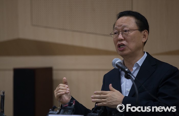 (서울=포커스뉴스) 15일 오전 서울 종로구 세종문화회관 서울시립교향악단 연습실에서 최흥식 서울시향 대표가 기자간담회에 참석해 취재진의 질문에 답하고 있다.