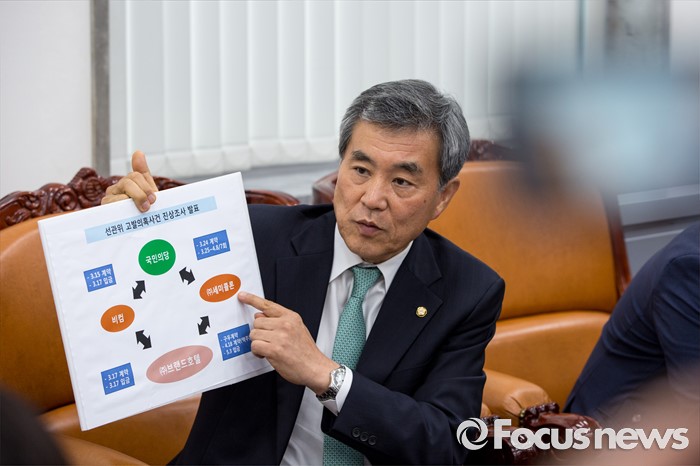 (서울=포커스뉴스) 김수민 의원 공천헌금 리베이트 관련 자체 진상조사단장인 이상돈 국민의당 최고위원이 15일 오전 서울 여의도 국회에서 리베이트 사건과 관련 중간조사 결과를 발표 하고 있다.