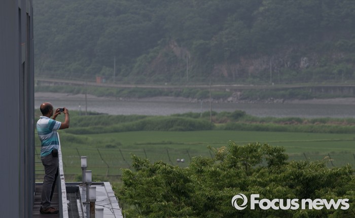 (파주=포커스뉴스) 6·15 남북공동선언 16주기인 15일 오전 경기도 파주 임진각 통일전망대를 방문한 관광객들이 북녘을 살펴보고 있다.