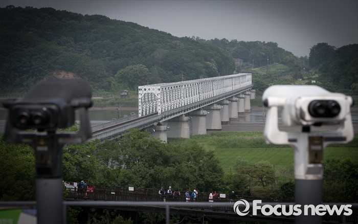 (파주=포커스뉴스) 6·15 남북공동선언 16주기인 15일 오전 경기도 파주 임진각 통일전망대에서 임진각 철교가 보이고 있다.
