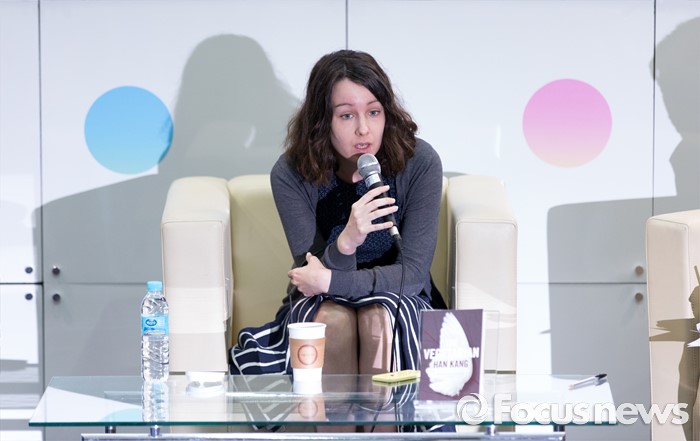 (서울=포커스뉴스) 15일 오후 서울 강남구 코엑스에서 열린 2016 서울국제도서전에서 '채식주의자'의 번역가인 데보라 스미스가 기자회견을 하고 있다.