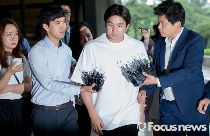 (서울=포커스뉴스) 음주운전 사고를 일으킨 그룹 슈퍼주니어의 멤버 강인(31·본명 김영운)이 15일 오후 서울중앙지방검찰청에 조사를 받기 위해 출석하고 있다.