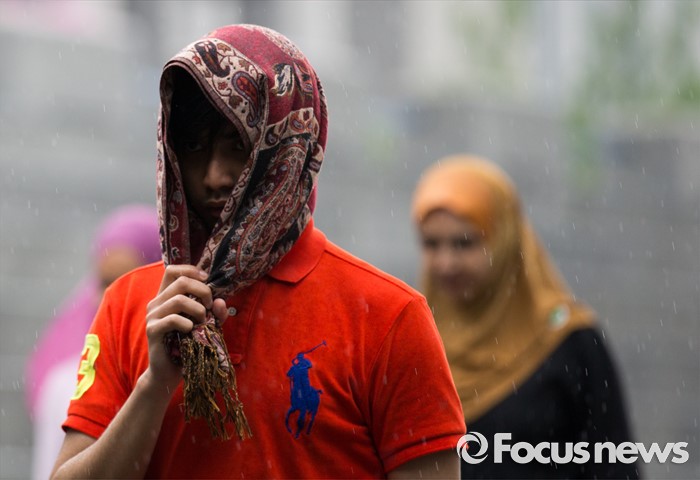 (서울=포커스뉴스) 전국적으로 비가 내리는 15일 오후 서울 종로구 광화문광장을 지나는 외국인 관광객들이 비를 피해 발걸음을 재촉하고 있다.
