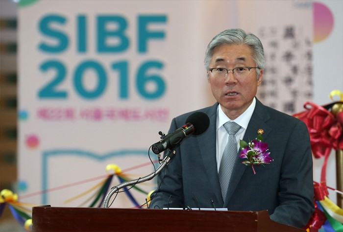(서울=포커스뉴스) 김종덕 문화체육관광부 장관이 15일 서울 강남구 코엑스에서 열린 ‘제22회 서울국제도서전 및 제3회 디지털북페어코리아 개막식‘에 참석해 축사를 하고 있다. <사진제공=문화체육관광부>