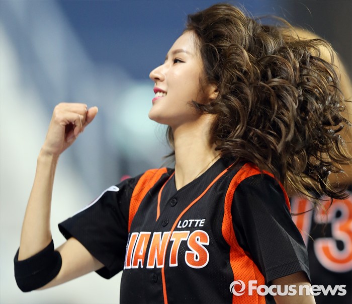 (서울=포커스뉴스) 15일 서울 고척 스카이돔 구장에서 열린 2016 프로야구 롯데-넥센 경기에서 롯데 치어리더 박기량이 승리를 부르는 응원을 하고 있다.