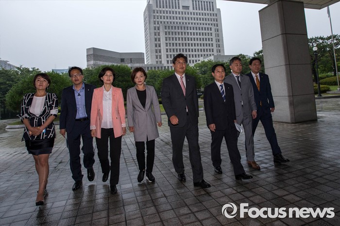 (서울=포커스뉴스) 더불어민주당 의원들이 15일 대검찰청을 항의 방문하고 어버이연합의 보수단체 자금 지원 의혹과 관련된 검찰 수사를 촉구했다.
