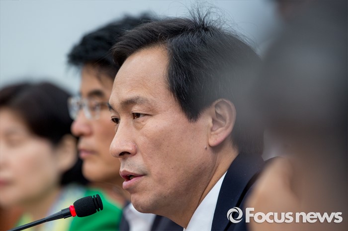 (서울=포커스뉴스) 우상호 더불어민주당 원내대표가 16일 오전 서울 여의도 국회에서 열린 정책조정회의에 참석해 모두발언 하고 있다.
