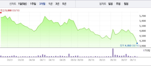 앞서 감사원은 대우조선해양 감사 결과 1조 5000억원에 달하는 분식회계를 적발했다고 15일 발표했다.주가흐름<사진출처=네이버 캡쳐>