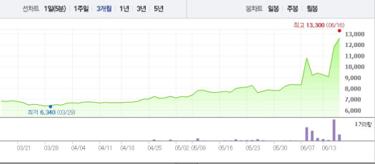 화일약품은 16일 오전 9시10분 현재 전일 대비 6.78%(800원) 상승한 1만2600원에 거래되고 있다. 화일약품은 15일에도 29.96%의 상승폭을 기록했다.