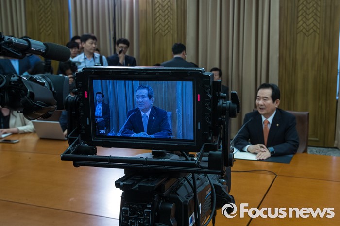 (서울=포커스뉴스) 정세균 국회의장이 16일 오전 서울 여의도 국회에서 열린 취임 기자간담회에 참석해 취재진 질문에 답하고 있다.