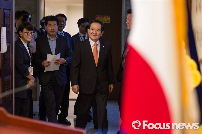 (서울=포커스뉴스) 정세균 국회의장이 16일 오전 서울 여의도 국회에서 열린 취임 기자간담회에 참석하기 위해 기자회견장으로 들어서고 있다.