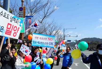 밀양을 지지하는 지자체는 사업비 절감 방안을 마련했다. 2011년 10조3000억원에 육박하던 사업비를 4조6000억원까지 낮췄다. 애초 27개나 깎아야 했던 산을 4개만 깎아도 장애물을 피하는 비행기술상 항공기 이·착륙에 문제가 없다는 주장이다.