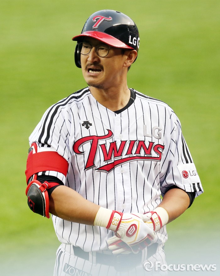 | △ 얼굴을 찡그리는 LG 박용택 |